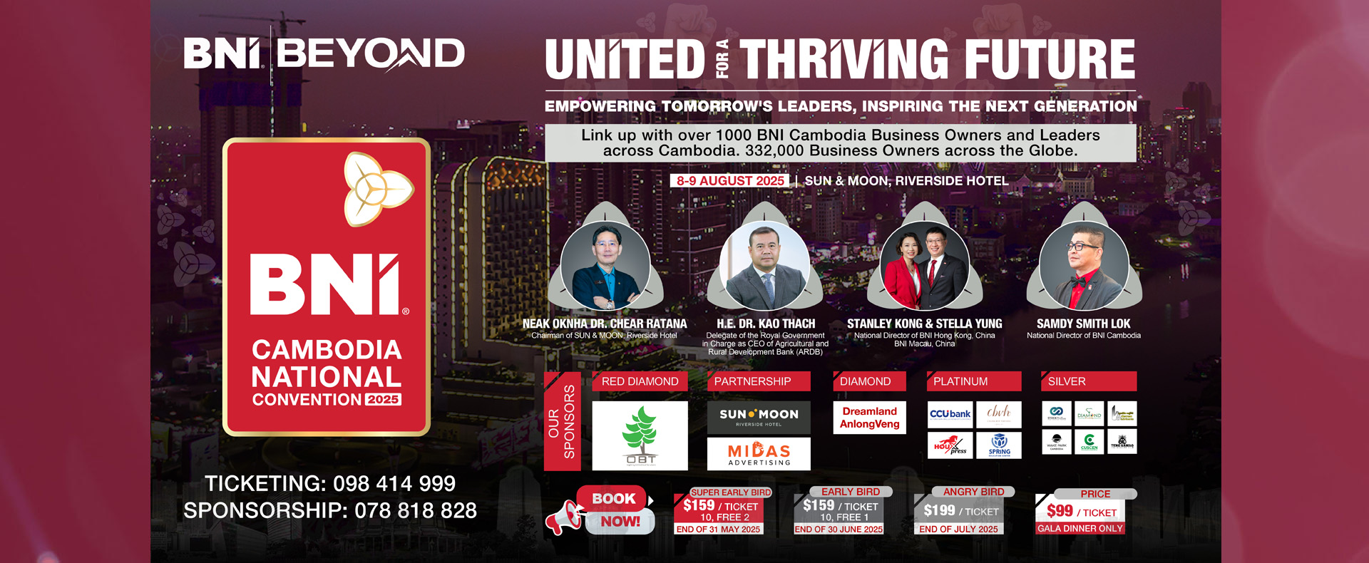 Give your business visibility it deserves on the national platform BNI Cambodia National Convention on the flagship annual event of BNI Cambodia and the perfect confluence of business, networking and celebrations.